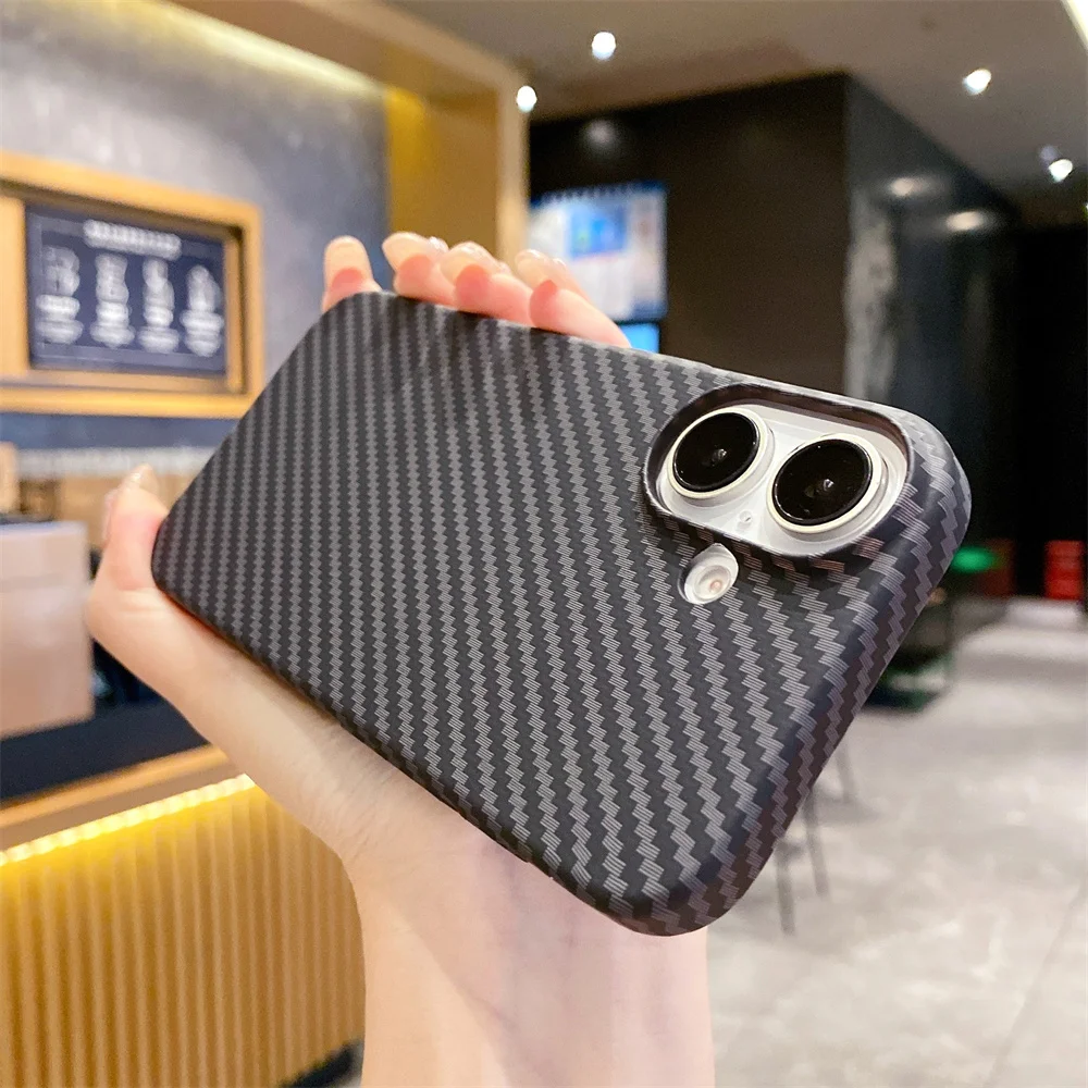 Trendy Carbon Fibre Relief For MagSafe Phone Case for iPhone 16 Pro Max 13 14 15pro 12 Wireless Charging Hard Shockproof Cover