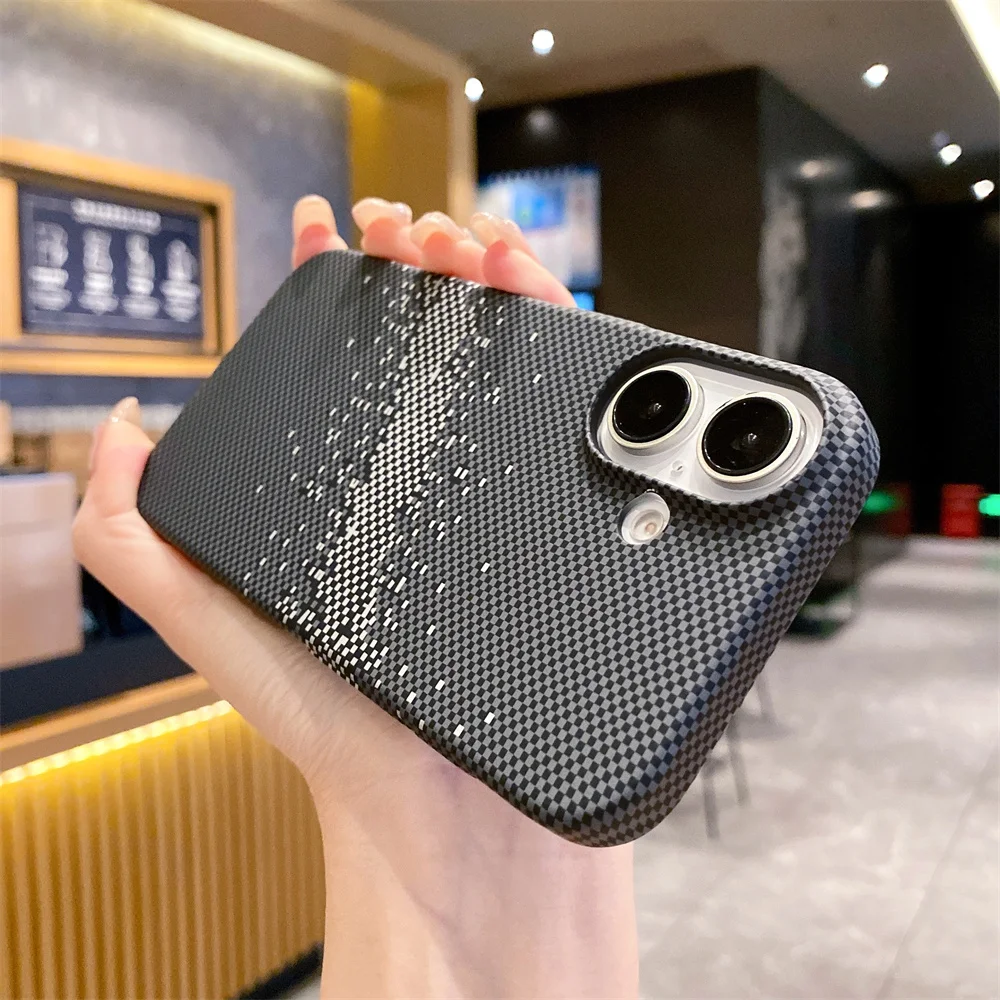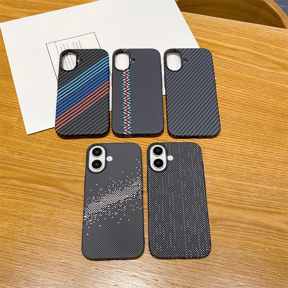 Trendy Carbon Fibre Relief For MagSafe Phone Case for iPhone 16 Pro Max 13 14 15pro 12 Wireless Charging Hard Shockproof Cover