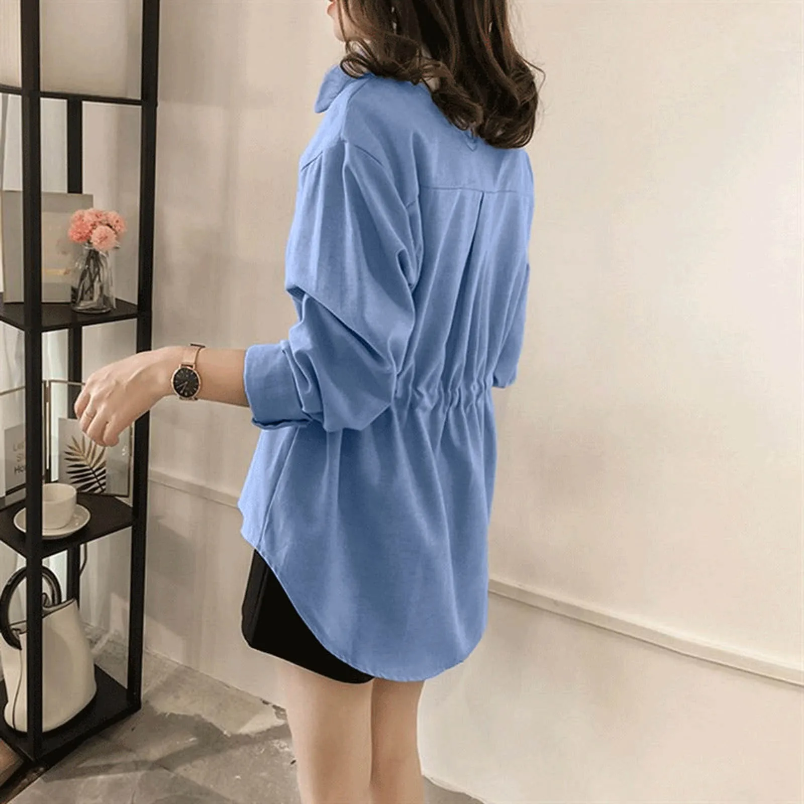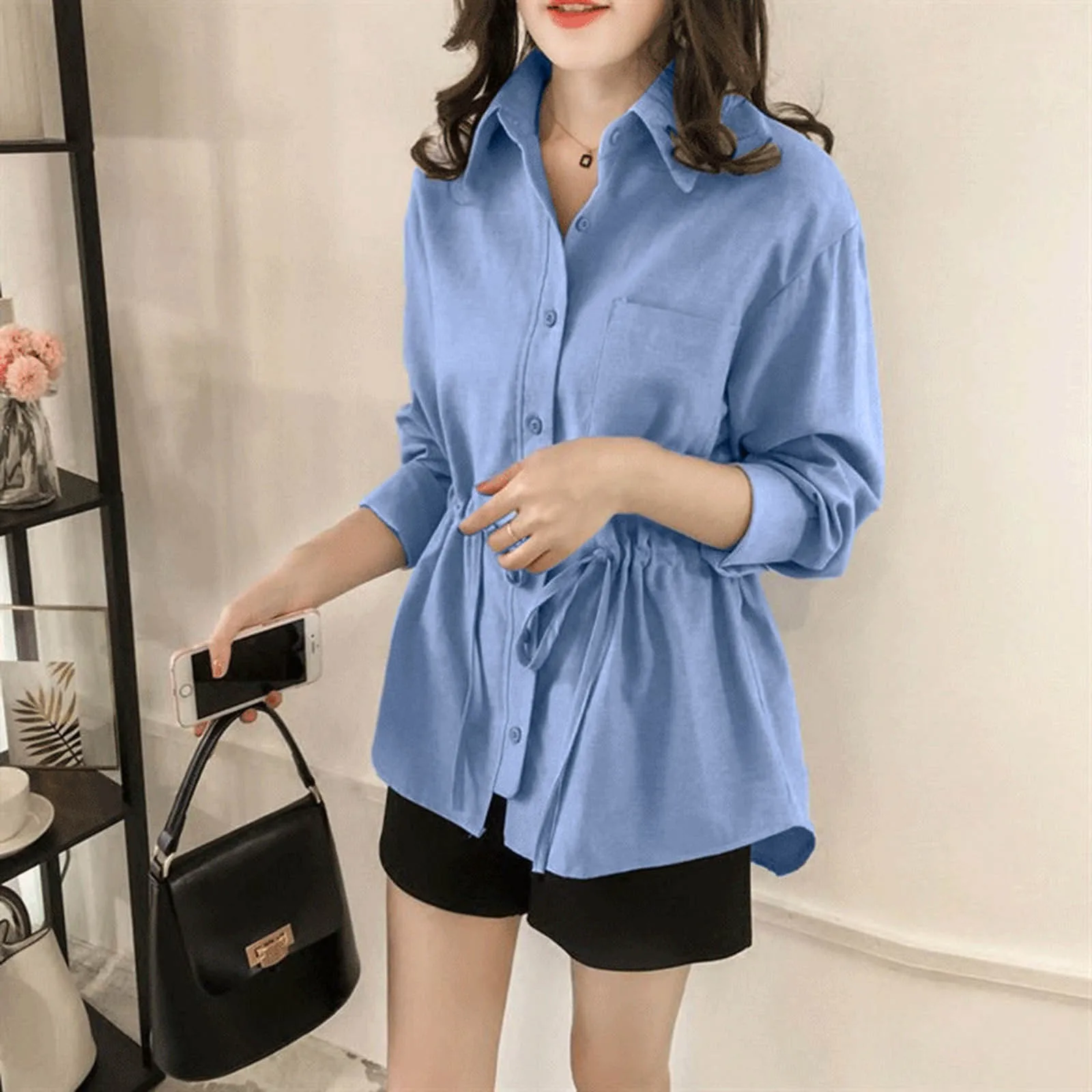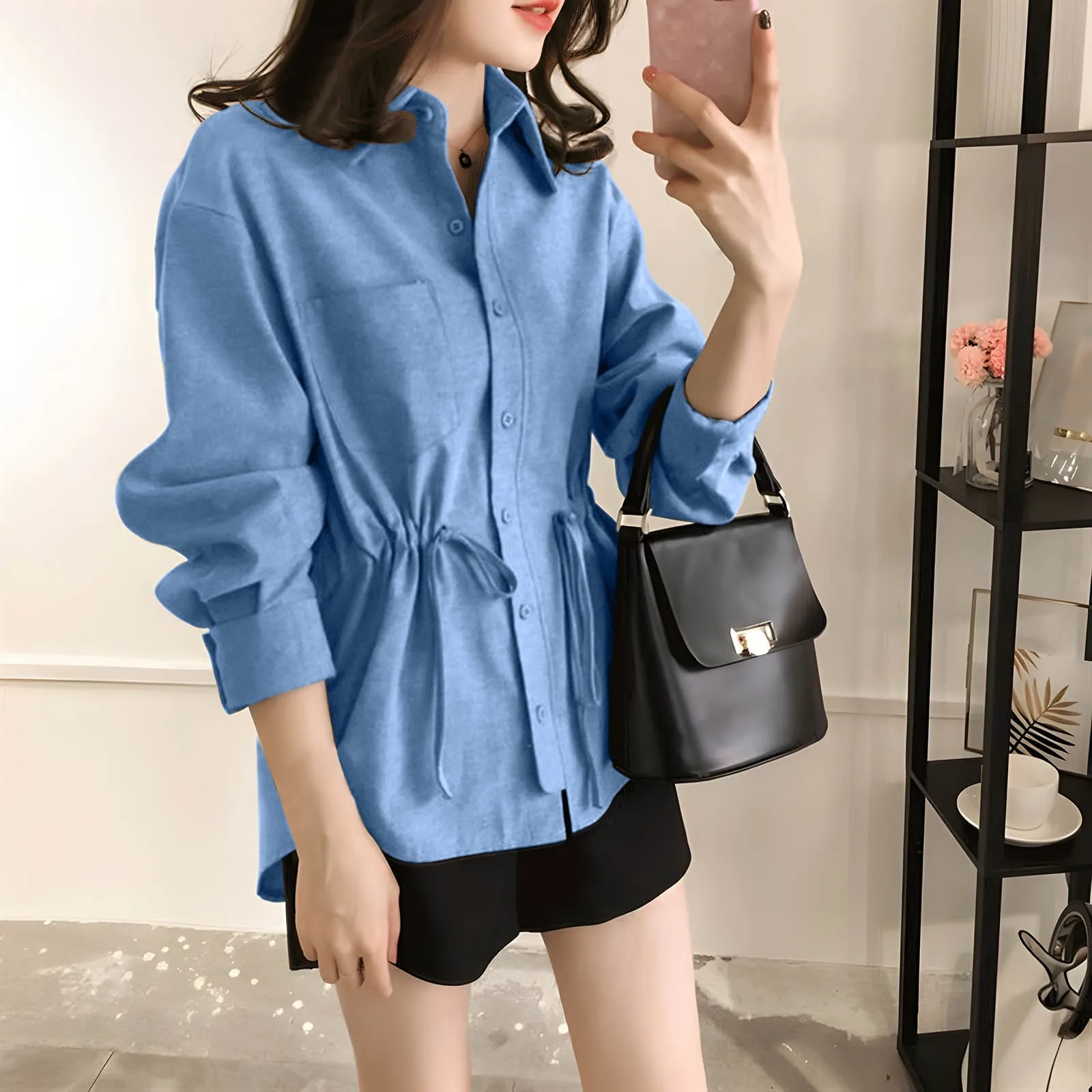 لتلبية احتياجات النساء 20 إلى 60 ، تم تصميم هذا القميص بالبساطة. باعتماد تصميم فضفاض وحلو ، لا يمكن استخدامه كملابس وقمصان يومية ، ولكن أيضًا كقميص/قميص التنقل/قمة! دائما تصور الفتيات لطيف وعصري.