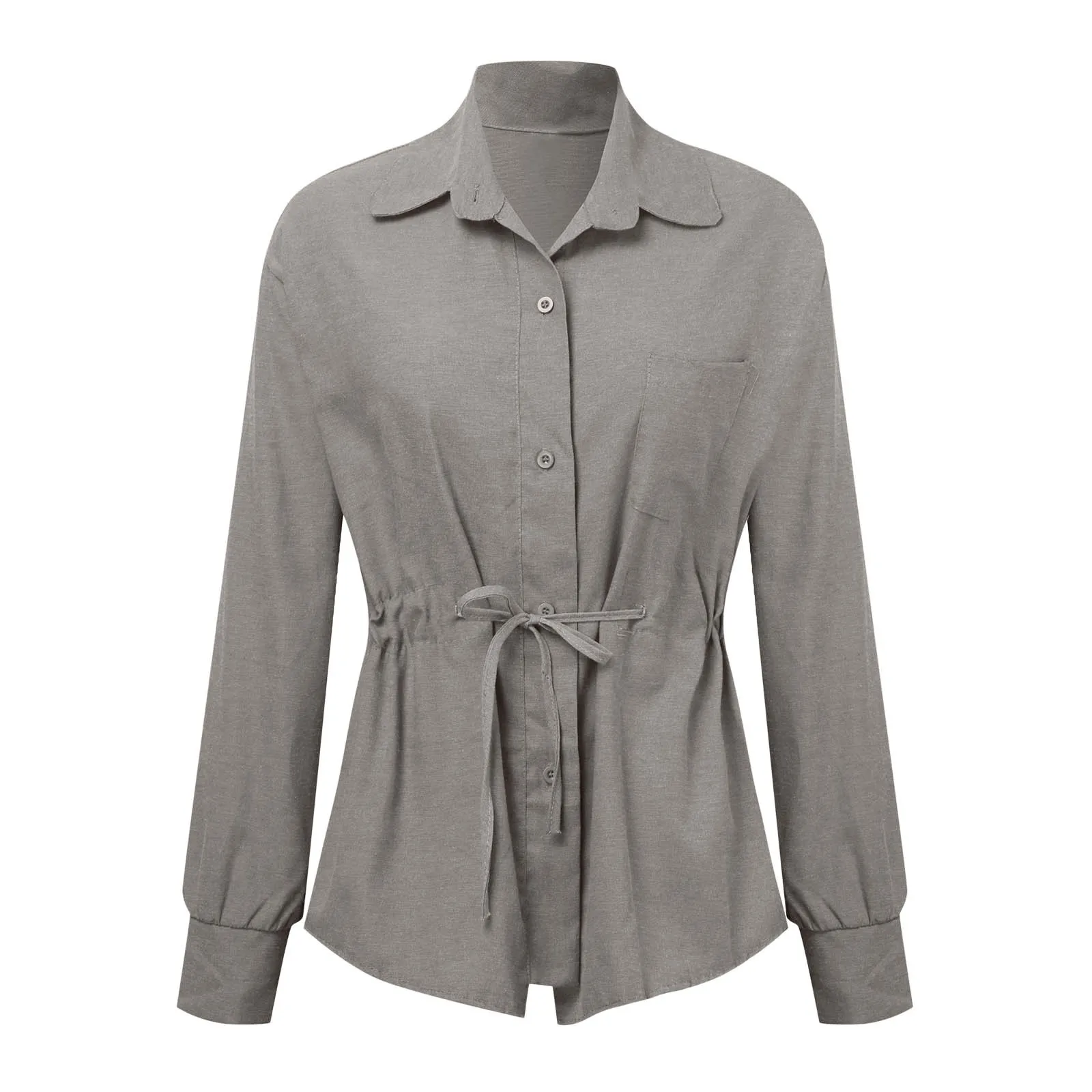 قميص طويل قميص نسائي بأكمام طويلة قميص كتان قطن كتان كاجوال مقاس كبير سادة فضفاض للكبار