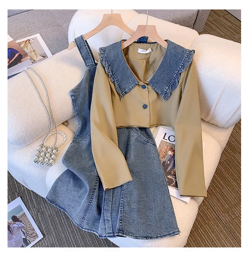 • مواد الدنيم عالية الجودة:مصنوعة من قماش الدنيم عالي الجودة، هذه البدلة المكونة من قطعتين ليست عصرية فحسب، بل متينة أيضًا وتدوم طويلاً، مما يضمن لك الاستمتاع بأسلوبها لسنوات قادمة.