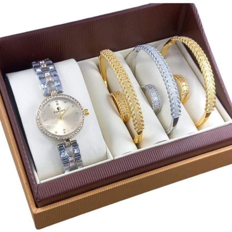 طقم إكسسوار نسائي ساعة مع أساور أنيقة